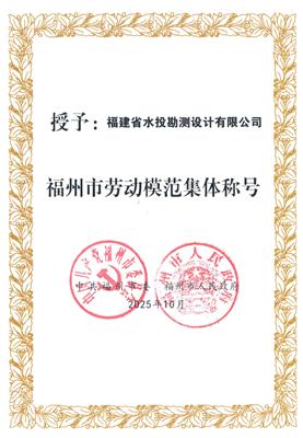 水投設(shè)計公司榮獲“福州市勞動模范集體”