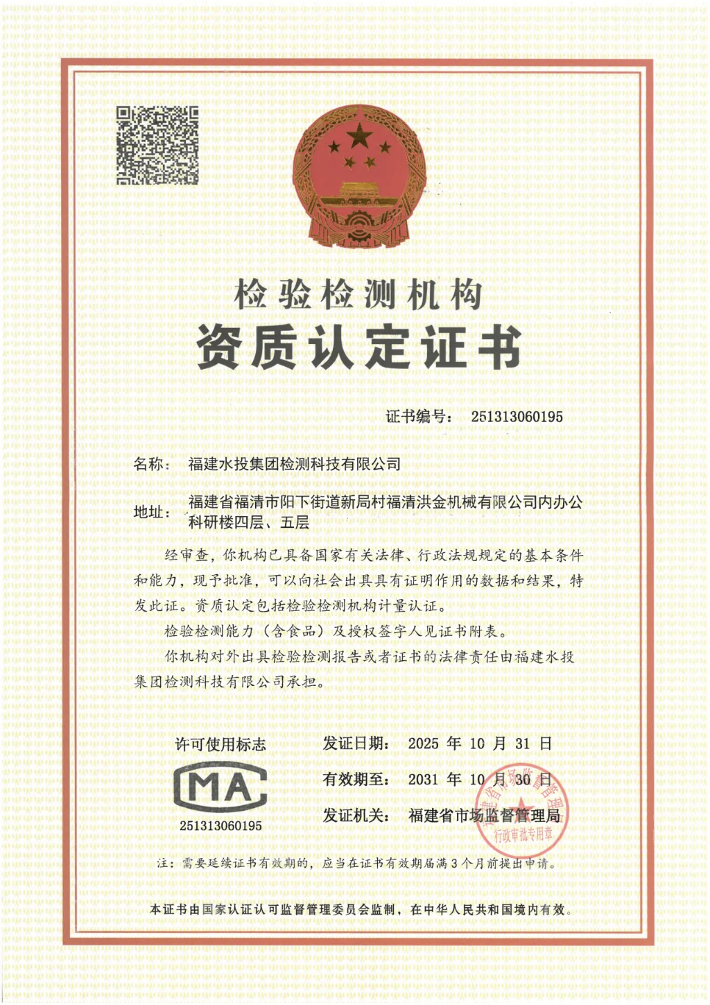 檢測科技公司獲批水質(zhì)檢測CMA資質(zhì)認定